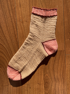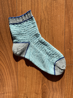 Textured sock: 31 stitches X 46 rows = 4” blocked