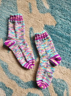 Coloring Book socks are a cuff down sock with a shadow wrap heel and some basic colorwork. The pattern is written for magic loop but can be easily adapted for DPNs or short fixed circular needles. It’s written for four sizes (1, 2, 3, 4) with ball of foot circumference at (7”, 8”, 9”, 10”) / (18cm, 20cm, 23cm, 25.5cm)