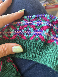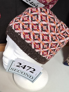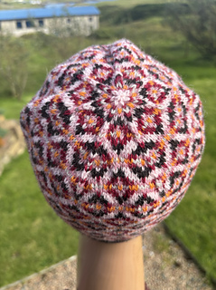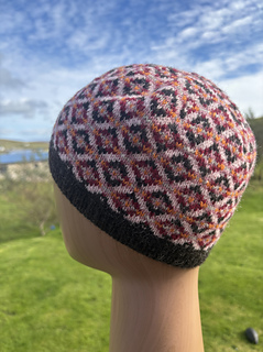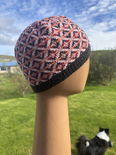 One of my most favourite knits to make is to come up with a design for the “Colour Challenges” at our local county shows. This beanie was designed for the Aister ‘oo’ 2025 colour challenge for Cunningsburgh Show where we had to use a minimum of four out of six shades to make a hat, gloves or headband. I was delighted to get first place for my gloves and a second for this beanie!