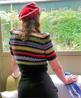 In the original pattern, each body half is knitted on 130 stitches with no shaping. Although this achieves a finished size of 89 cm (35 inches) across the bust at the underarm measurement if knitted on 3.75 mm needles (Fair Isle will tend to be a tighter tension than stocking stitch), it is a larger number of stitches than usual for starting the ribbing for that size, so different numbers of cast-on stitches have been given below as an alternative.