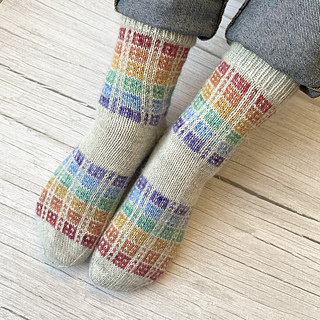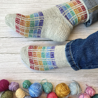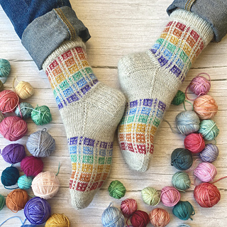 Colour Swatch Socks is a fun and lively colourwork design perfect for using up scrap sock yarns and yarn advents. The colour combination options are endless.
