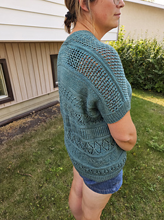 This cardigan is meant to be worn open (there are no buttons) and with approx. 3-8 inches of positive ease.