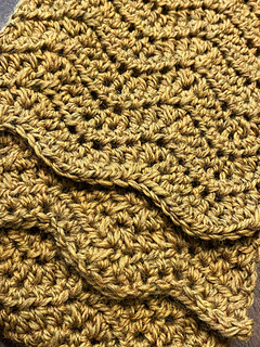 Gauge is not super important, but 13 stitches and 7 rows will give you approximately 4” worked in pattern. (Height is difficult to gauge in rows due to the undulating wave shape.)