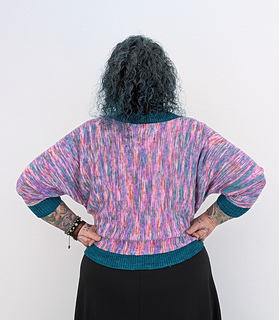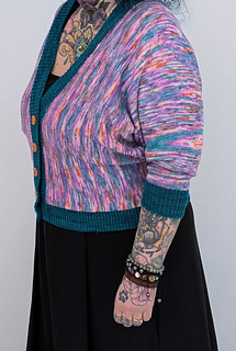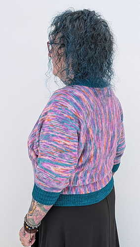 The Coming Together Cardigan Light is a cardigan designed by Ann-Heidi of @spinnemamma and Miriam of @miriamtheweaver, to show off hand dyed yarn in an interesting way.
