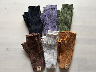 These simple fingerless mitts are knit bottom up with a thumb gusset, created with symmetrical lifted increases. The simple rib stitch gives a stretchy, fitting garment. Long enough to go under the coat.