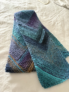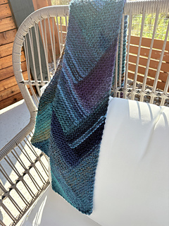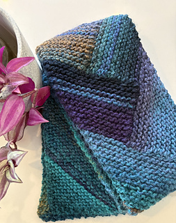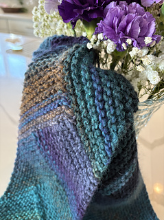 This captivating scarf was inspired by the deep blues, greens, and violets of an Italian lake at dusk. A simple geometric design highlights the gorgeous gradient hues of Adriafil Mistero, a soft lightweight bulky yarn discovered on a trip to Lake Como. The result is a stunning – and reversible – arrangement of ever-changing colors that cascades to a generous 60 inches of cozy, wearable art. Three skeins of Adriafil Mistero in color palette number 67 were needed for this version of the scarf, but the pattern will work beautifully with any bulky or chunky gradient yarn. Solid colors will produce a bold, modern look.