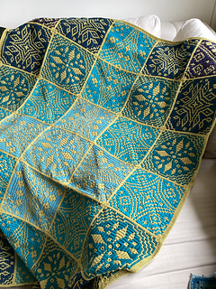 The blanket is made in overlay mosaic technique and can only be crocheted from the center out.