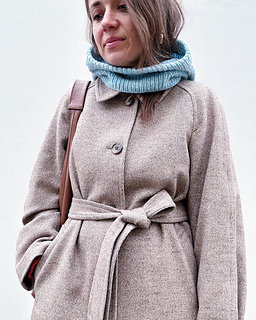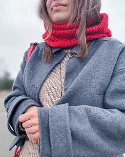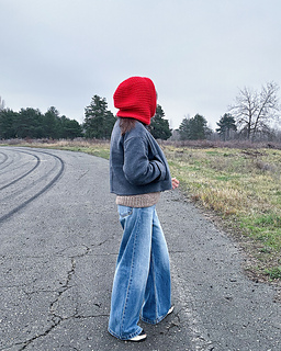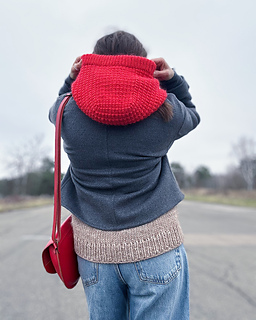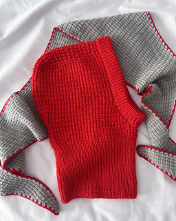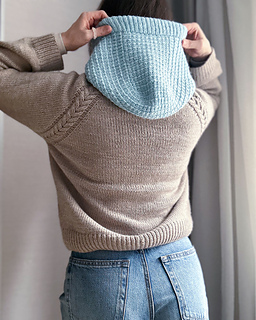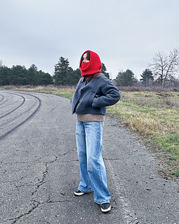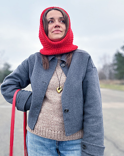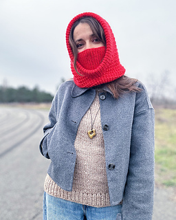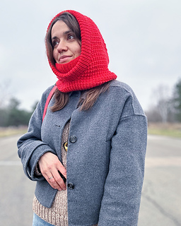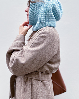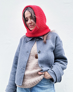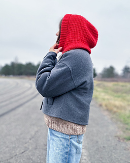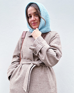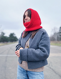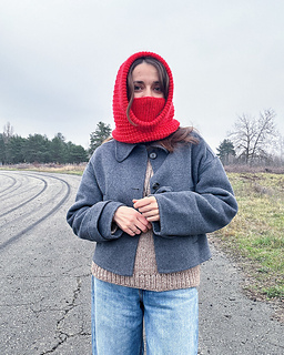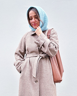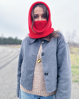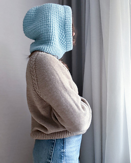 Hood is finished with delicate ribbing at the bottom and folded ribbing around the face opening. Optionally, you can make the bottom ribbing longer, fold the ribbing inward so it covers your lips and cheeks for extra coziness on cold winter days.