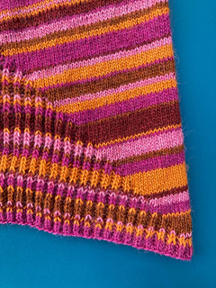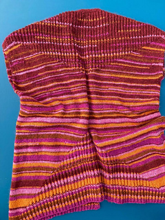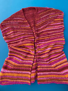 The Controversy vest is knitted top down in one piece. There is no seaming together. Begin by knitting the double knitted neckline, pick up stitches and begin knitting top down in brioche with large increases at the shoulders. When the width of the shoulders/sleeves is reached, the fronts and back are separated and each knitted straight down until the sleeve opening is finished. Then the 3 pieces are joined together again, and at the same time the sleeve openings are finished by a clever bind off method. The rest is knit straight down, with small details on the go. It is very interesting and engaging. I hope you will enjoy the knitting.