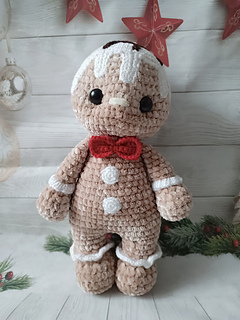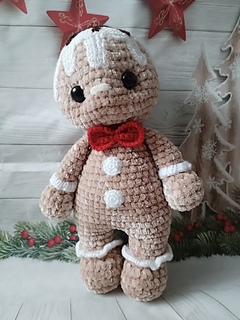 The pattern of this gingerbread man is suitable for intermediate and advanced crocheters, although I think even beginners should be able to follow the instructions.