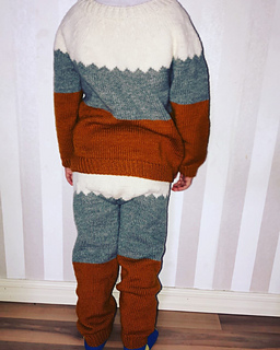 Settet er strikket i Sandnes merinoull med strikkefasthet på 22/10.