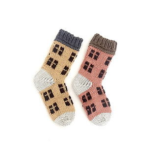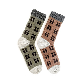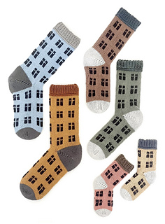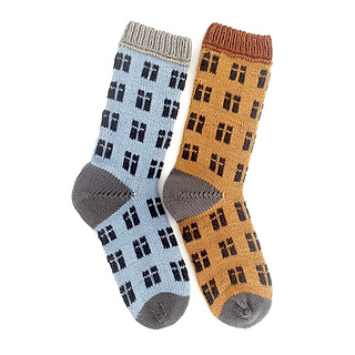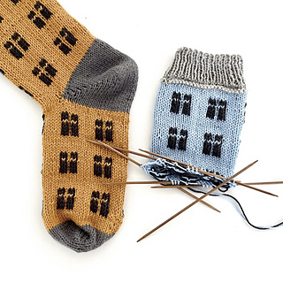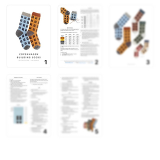 The Copenhagen Building Socks are based on the residental architecture of Copenhagen, and have been developed from designs in my Copenhagen Building Blocks blanket patterns.