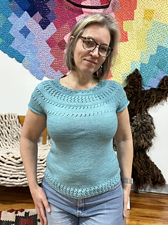 Cora Bells is knit from the top down and in the round. There is no seaming. This would be a great first sweater. If you are comfortable with knitting in the round, increases and decreases, and picking up stitches, you can absolutely knit this top.