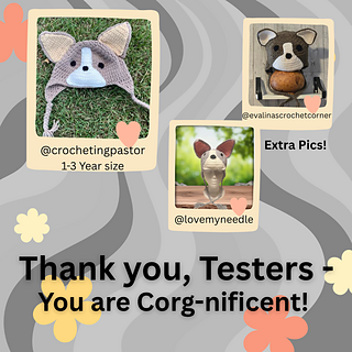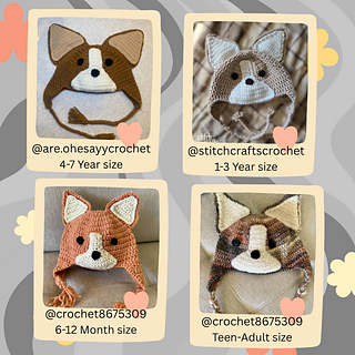 Now you can crochet your very own Corgi Hats! This pattern has been pattern tested and is perfect for advanced beginner/intermediate crocheters due to some sewing. It includes sizing options from Newborn to Adult, as well as detailed instructions and pictures to guide you along the way.