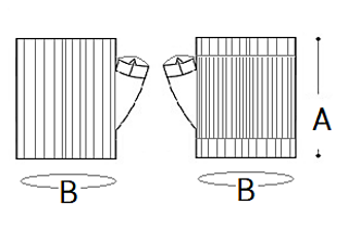 B: 6½ (7, 7¾, 8½)” 16.5 (18, 19.5, 21.5) cm circumference, un-stretched; shown in size 6½” 16.5 cm worn with ¾“ 2 cm negative ease