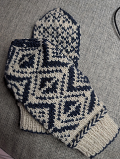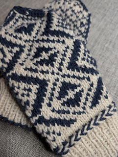 Ett nøste av hver farge rekker da til ett par. Vil du også strikke luen rekker det med 100 gram av bunnfarge og 50 gram mønsterfarge