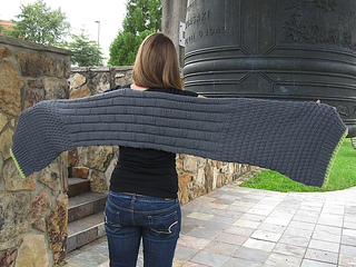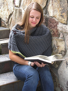 The bamboo stitch decorates your back with an earthy, yet refined stitch pattern. The granite stitch on both ends easily twists and folds to help you shape this wrap however you choose.