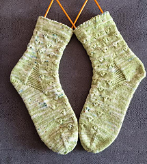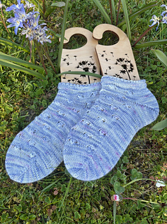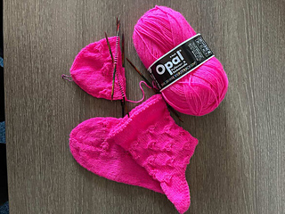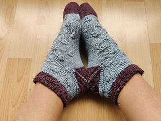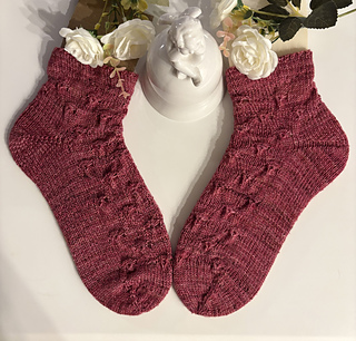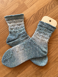 Die Socken werden toe-up, also von der Spitze nach oben gestrickt. Dadurch kannst du die Länge jederzeit individuell anpassen, die Passform direkt anprobieren und dein Garn optimal ausnutzen. Das Blütenmuster beginnt bereits an der Spitze, verläuft bis zur Ferse und wird am Schaft erneut aufgegriffen – für ein harmonisches Gesamtbild.