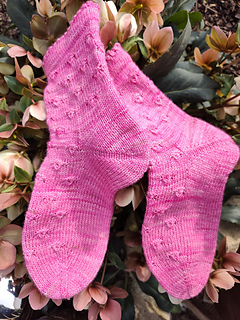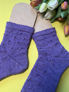 Die Cosmea Socks sind eine elegante Strickanleitung für Socken mit einem feinen, filigranen Blütenmuster. Inspiriert von der sanften Stimmung eines blühenden Blumenfelds entstehen zarte, detailreiche Socken, die besonders schön mit einfarbigen oder leicht melierten Garnen zur Geltung kommen.