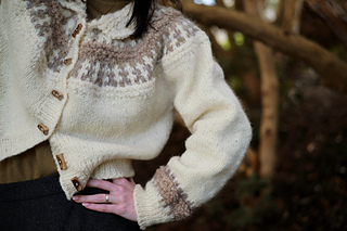 Combining the smooth fluidity of unspun Nutiden, with the textured structure of Varv, Cosmina is a multi-sensory interpretation of the traditional colourwork yoke.