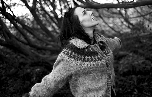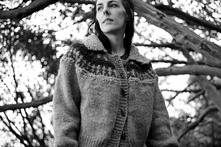 A front-back reversible design, this garment can be worn either as a cardigan, or as a pullover with buttons down the back, for an added layer of unexpectedness. Instructions for a pullover-only version are also provided.