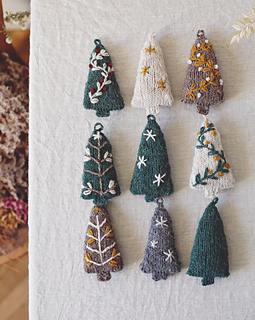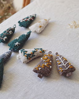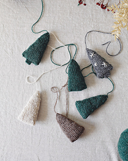 They are knitted in the round without seams, starting at the bottom of the tree with a Turkish Cast On, just like knitting socks starting at the toe. The thickness of Ulysse is perfect for their size and its carded texture gives them a charming rustic and soft look! You will need less than 5 g per tree to make them, so it’s a perfect little project for using up leftover balls of yarn :)