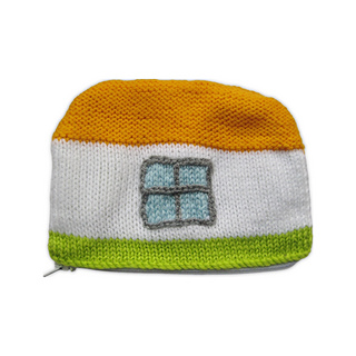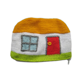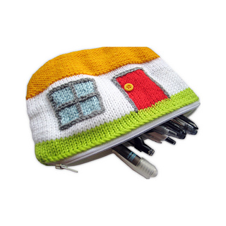 This Cottage Case is an ideal home for your pens and pencils. The pattern incorporates intarsia colour work, and the purse is closed with a zipper which is sewn in by hand.