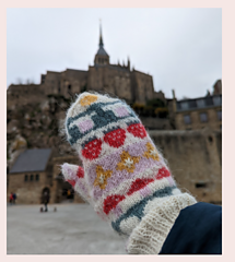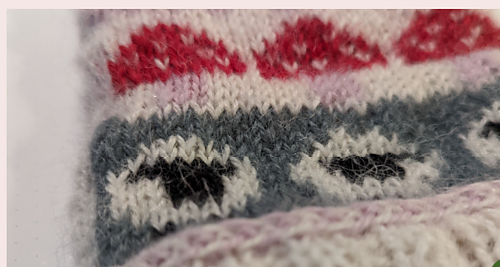 Techniques: Knitting in the round, Latvian braid, k2tog, ssk, stranded colourwork, duplicate stitch, Kitchener stitch, afterthought thumb