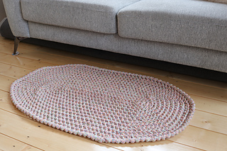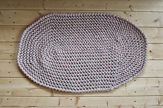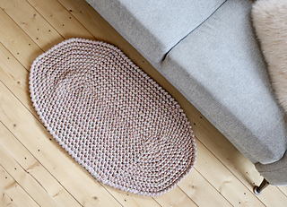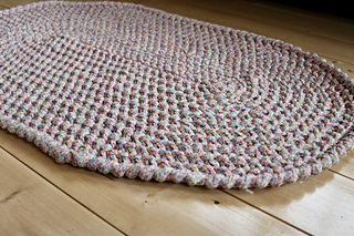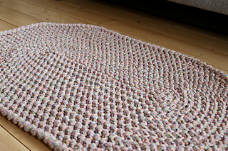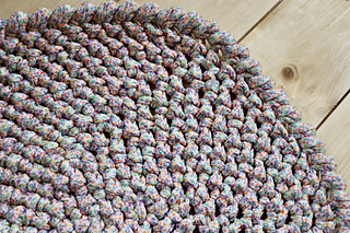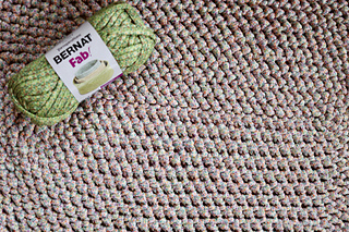 Yarn: Bernat© Fab!™ (100% Polyester; 7oz/200g; 37yds/33m; Size 7/Jumbo Weight). You will need approximately 333 yards to make the rug or nine balls. Colour Shown: Garden Party.