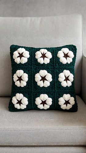 This crochet motif features a soft flower center surrounded by textured petals that gently pop up, giving the square a lovely 3D look. The pattern is written in US crochet terms and includes detailed step-by-step instructions — perfect for beginners or anyone who loves textured crochet designs.