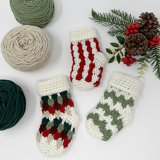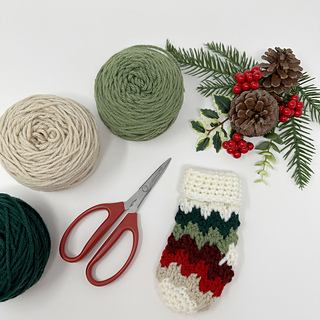 This little Mini Country Charm Stocking is such a sweet make for the holidays. It works up quickly, uses only small amounts of worsted weight yarn, and has that warm handmade look that feels just right for decorating, gifting, or adding to your tree.