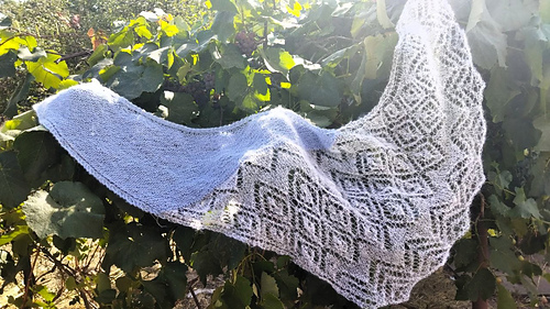 The shawl does not require filigree blocking, so it can be knitted from any yarn.