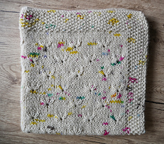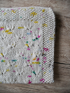 La laine suggérée ici se tricote avec des aiguilles de taille 4, mais il est possible d’adapter les instructions pour tricoter la couverture avec une autre laine et autre taille d’aiguilles.