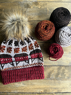 The Covered Bridge Beanie is the perfect fall knitted hat! The pattern is written with a cozy folded brim and only in one adult size, but it’s easy to shorten the brim or make a child-size version by adjusting the pattern by 16 stitches, or one motif.