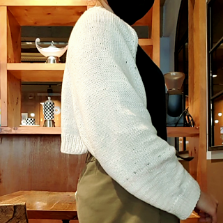 래글런 늘림을 사용하여 톱다운 방식으로 뜨는 볼레로입니다.