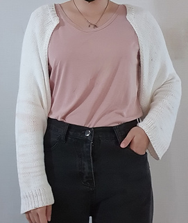 This Bolero is worked from the top down with raglan increases.