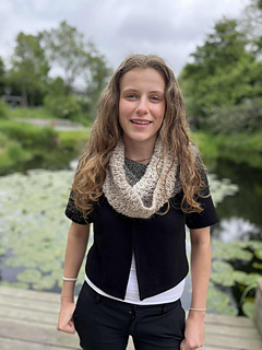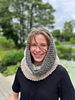Soft and easy-to-knit two-colour cowl worked in DSA Alpakka Tweed using structured rib. The size is one size, and three balls of yarn are used.
