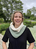 Soft and easy-to-knit two-colour cowl worked in DSA Pus using structured rib. The size is one size, and two balls of yarn are used.