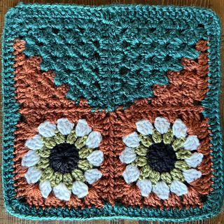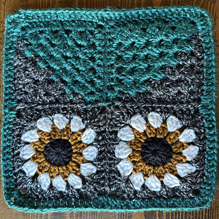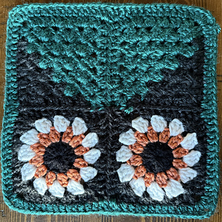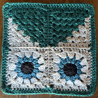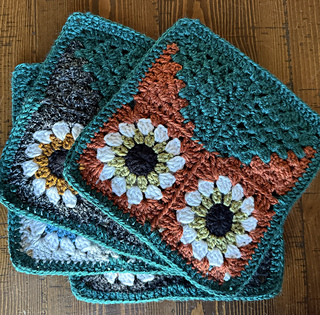 - Uses simple crochet squares (granny circle and C2C granny) to form a quad.