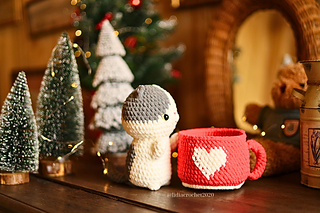 Pattern Features : The head and body are crocheted in one piece. Front legs and tail are crocheted separately, then joined seamlessly while working the body. Ears are crocheted directly onto the head — no sewing needed! The mug is made separately with a heart design on the front.