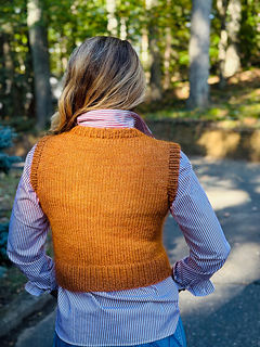 Construction Details: The Cozy Prep vest is worked in the round from the lower edge towards the shoulders. The vest is split for the armholes and the front and back are worked flat, separately. After completing the body, the shoulders are seamed. Stitches are then picked up and worked in the round for the neckline and armhole hemmed edges.