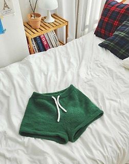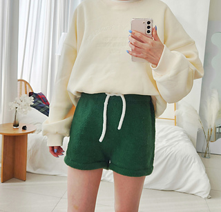 Cozy Shorts are worked top-down, starting from the waist and progressing downward toward the thighs.