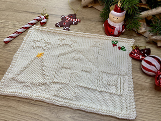 A peaceful Christmas cottage captured in stitches: this easy textured dishcloth (or blanket square) features a snowy house, tree and stars, with optional embroidery for a pop of festive colour. Designed as a calm holiday knit, it’s perfect for cosy winter evenings when the rush is over and you just want simple, comforting rows on your needles.