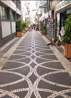 This pretty border of a Calçada Portuguesa mosaic can be found in Ponta Delgada, the capital of the Azores. I think it’s a must-have for my socks with motifs from Portuguese pavement art. Since the pattern for the border requires 19 stitches vertically, as in the photo, I made a second (horizontal) version. I then used it for the socks. Which do you prefer?