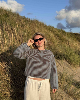 Der CPH Pullover wird im Vollpatentmuster in Runden von oben nach unten gestrickt und hat eine positive ease von 20-30 cm.