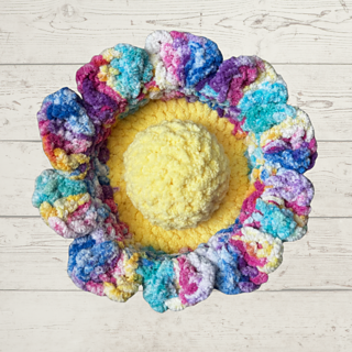 40-50g of plush yarn (I used 2 colors in roughly 23 grams each for the flowers)