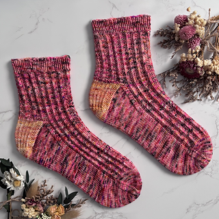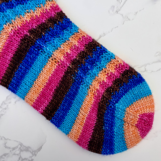 This pattern is written for magic loop and is worked cuff down. It has a 1x1 ribbed cuff, a heel flap and gusset, and a rounded toe. However, you can use any style of small circumference knitting, as well as any cuff/heel/toe combination of your choice.