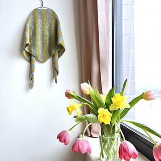 A lightweight triangular scarf, ideal for exploring different color combinations or for showcasing that special skein of yarn. Simple and versatile, this piece works beautifully year-round.