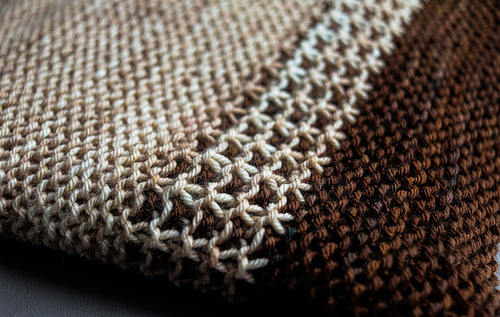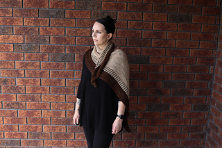 Soft browns slipped together in this soothing crescent shaped shawl.