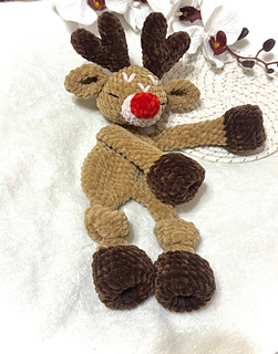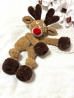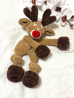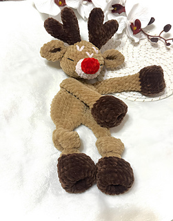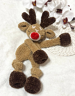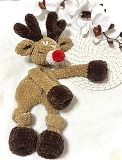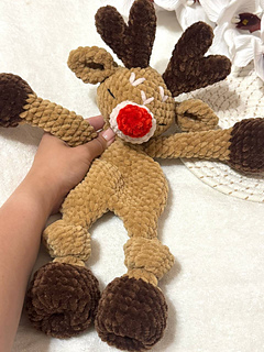 A very soft crocheted Christmas reindeer comforter. It is special because there are no plastic parts in the toy, all the details are sewn on, which is perfect for babies. There are a lot of photos in the pattern that will simplify the crochet process :)